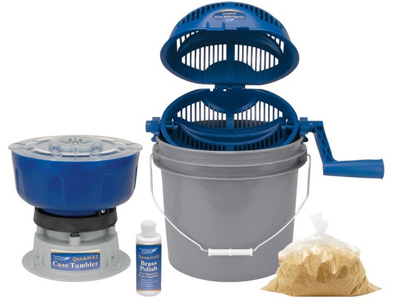 The Frankford Arsenal Case Tumbler provides a quick, easy and economical means to clean your brass.Used in conjunction with the FrankFord Arsenal walnut and corn cob media, the Quick-N-EZ™ Tumbler removes fouling, Lube and oxidation quickly and conveniently. It will hold up to 600 9mm or 350 .223 cases. The Kit includes Quick-N-EZ™ Case Tumbler, Quick-N-EZ™ Rotary Media Seperator, 4 oz Brass polish, 3 lb Cleaning Media and a Plastic Bucket.